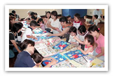 [子育てサロン] ●おはなし読み聞かせ会(毎月2回) ●みんなでつくろう会/工作(毎月1回) ●みんなでつくろう会/手芸(隔月1回) ●みんなでつくろう会/クッキング(隔月1回) ●フィーリングアーツ(毎月1回) |